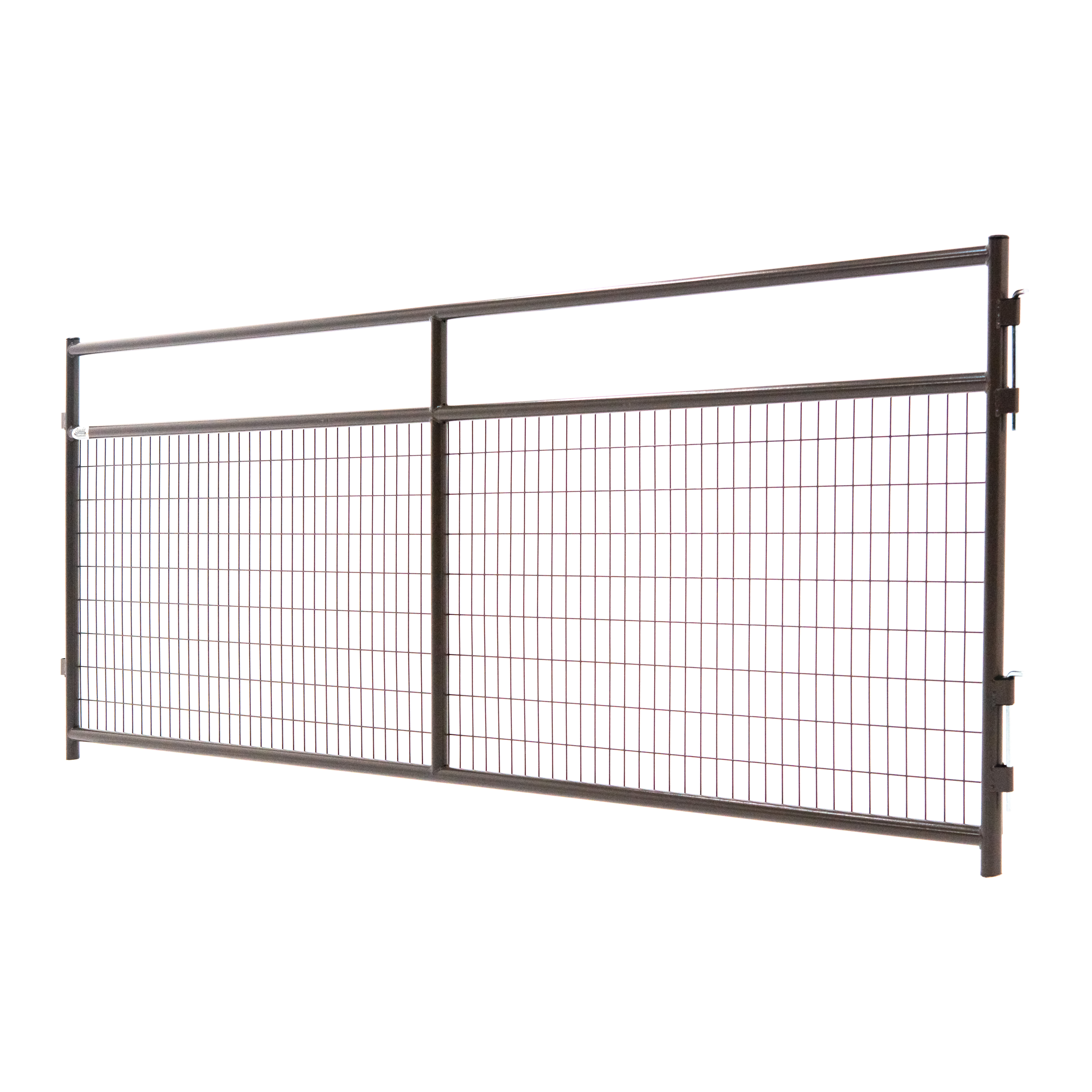 Wire-filled gates & panels readily connect with other wire-filled gates & panels. They require adaptation to connect with any other series of Powder River gates & panels.